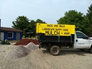Our first delivery of decorative stone was to Lake Mills WI. 3 yards of Purple Quartzite were the landscaping rocks of choice as well as a load of red mulch.